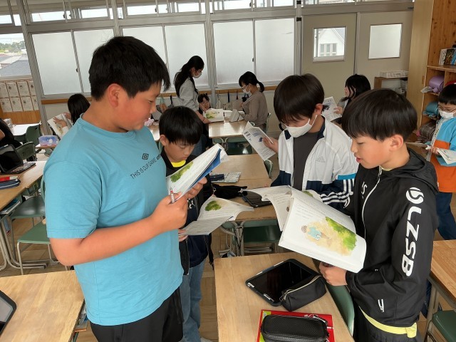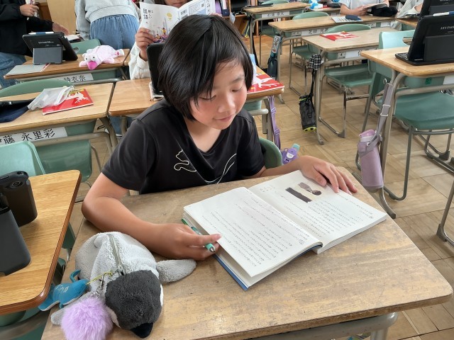 6年桜組の国語科の授業では、「さなぎたちの教室」の読み取りを行っています。