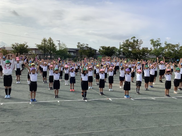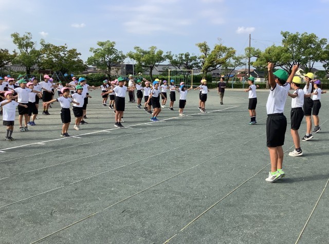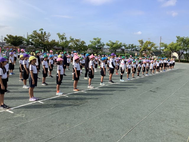 開会式と全校競遊「大玉送り」の並び方を確認しました。