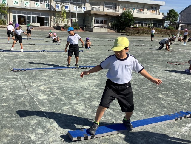 3年生と4年生は、障害物競走の練習をしました。