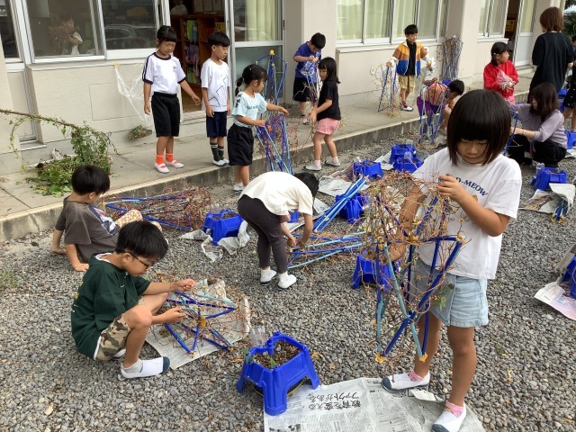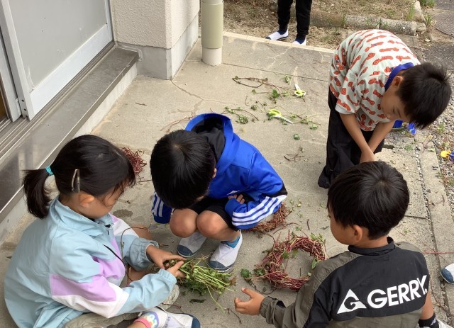 10月14日 1年生 生活科「アサガオのリースづくり」