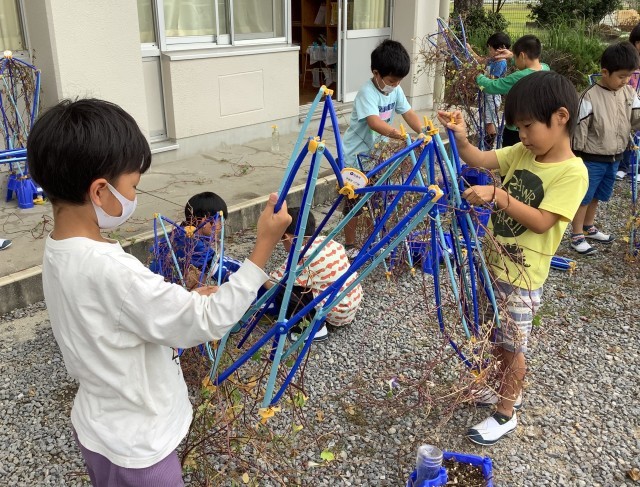 つるが絡んだり切れたりして悪戦苦闘しましたが、何とかリースができました。最後までがんばりました。