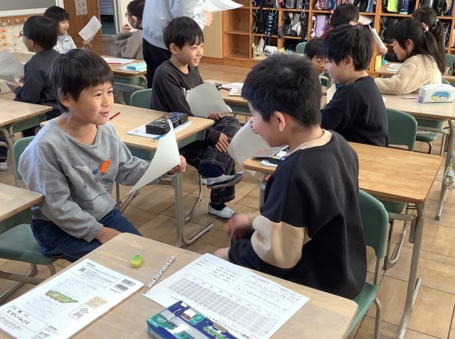 また、1000をこえる数の大きさを比べたり、ペアで1000をこえる数を数えたりしました。