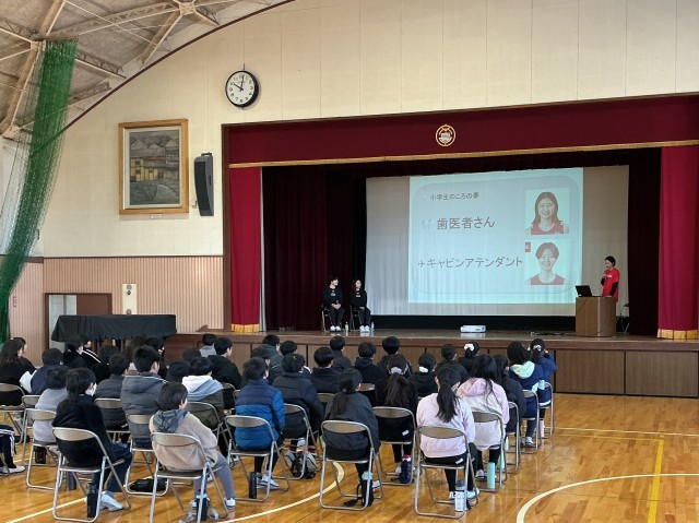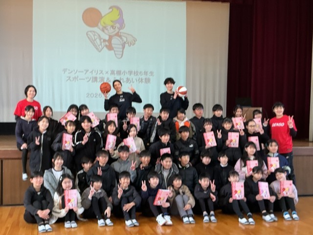 女子バスケットボールチーム「デンソーアイリス」の選手の方々に来ていただき、「女子バスケ選手スポーツ講演」を実施しました。