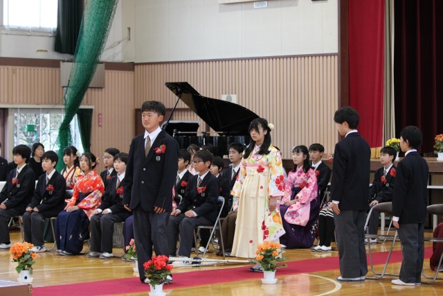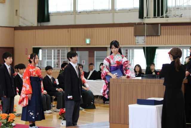 校長から卒業証書を受け取り、50名の卒業生が高棚小学校を巣立っていきました。