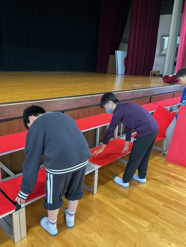 新6年生が登校し、入学式・始業式の準備を行いました。