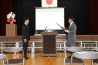 全校朝礼がありました。校長先生からは、「気持ちのよいあいさつをしよう」「災害時は状況を判断し、自分で考えて行動しよう」と話がありました。その後、表彰を行いました。