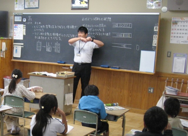 「とじこめた空気は、おされると体積が小さくなる」「とじこめた空気は、体積が小さくなるほどおし返す力が大きくなる」ということをまとめました。