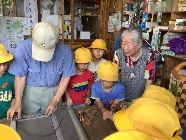 鈴木建具店へ行き、どんな仕事をしているのか話を聞き、実際に網戸を付けるところを見せていただきました。