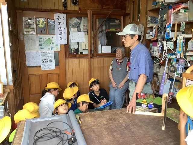 神明神社、空臨寺、高棚こども園、地域の店に町探検へ出かけました。