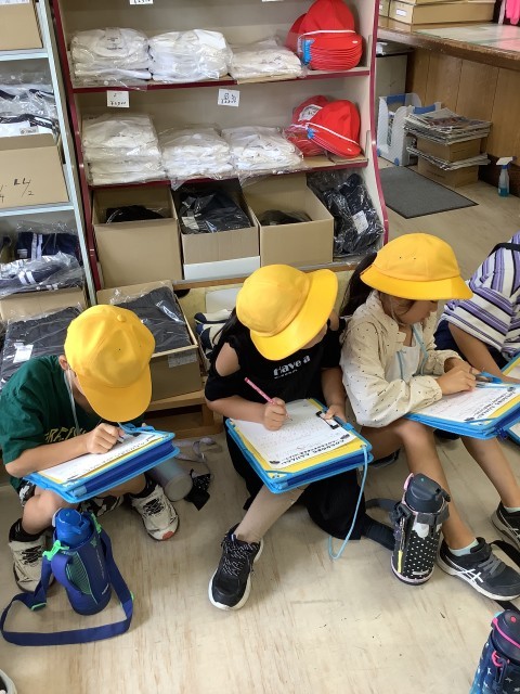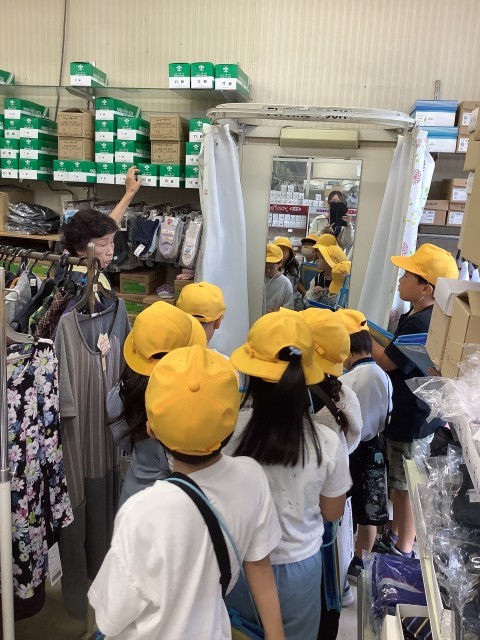 お店の中を見たり、仕事の内容を教えていただいたりしました。いつも着ている体操服や中学校の制服、婦人服など、たくさんの商品を売っていることが分かりました。