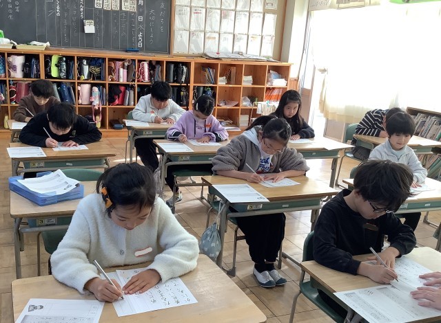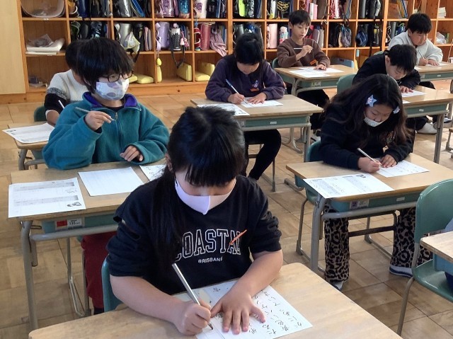 手本をよく見て、よい姿勢で正しく文字を書きました。