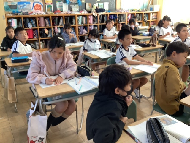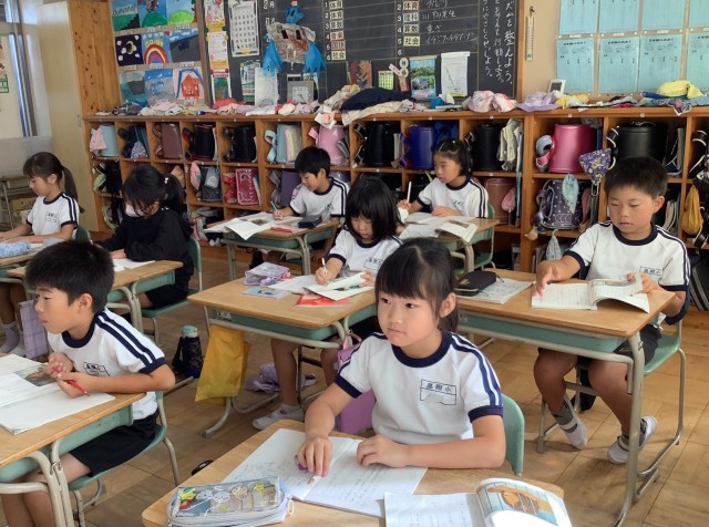 雪組は、国語科「主語とじゅつ語、つながってる?」、月組は、道徳科「安城が原の水…石川喜平の思い」を学習しました。