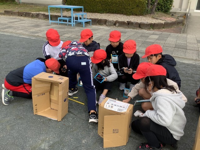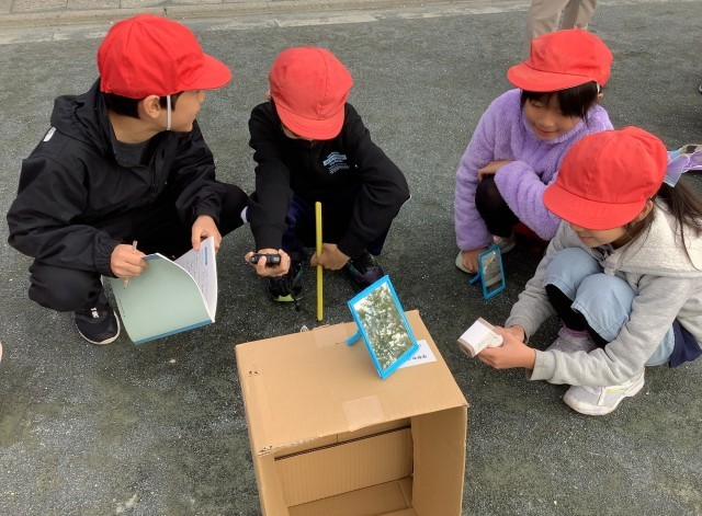 鏡ではね返した日光が当たったところは、あたたかくなるのかを調べました。