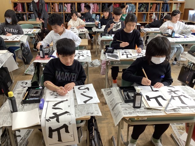 12月4日 「書写指導 ~地域の先生から学ぶ~」(4年生 その1)