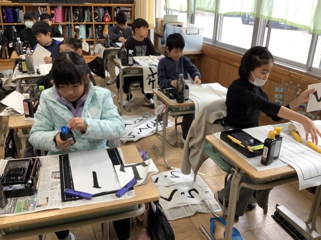 書くときのポイントに気を付けながら、のびのびと書く姿が見られました。