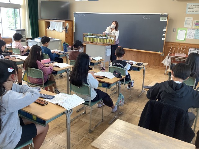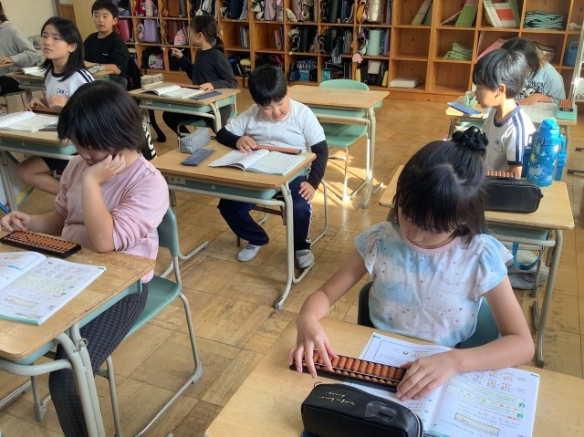 今日は、そろばんを使ったときの小数の数の表し方や計算の仕方を学習しました。