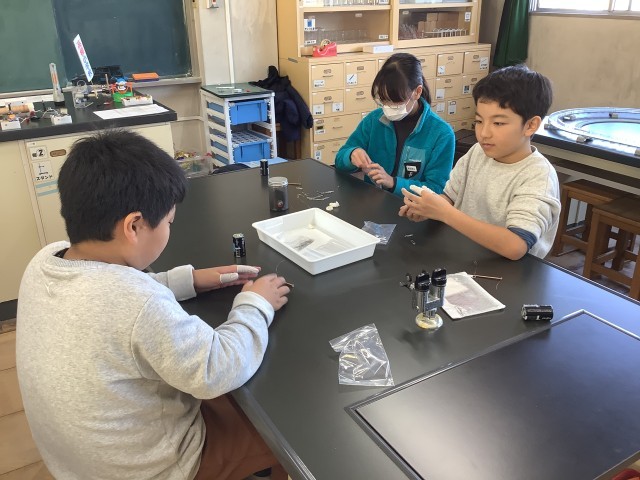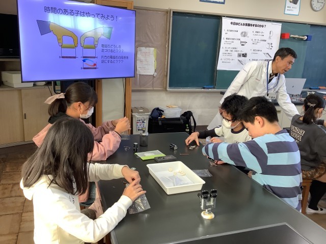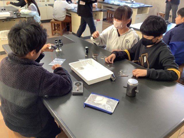 電磁石の性質を学んだり、釘にエナメル線を巻いて電磁石を作ったりしました。