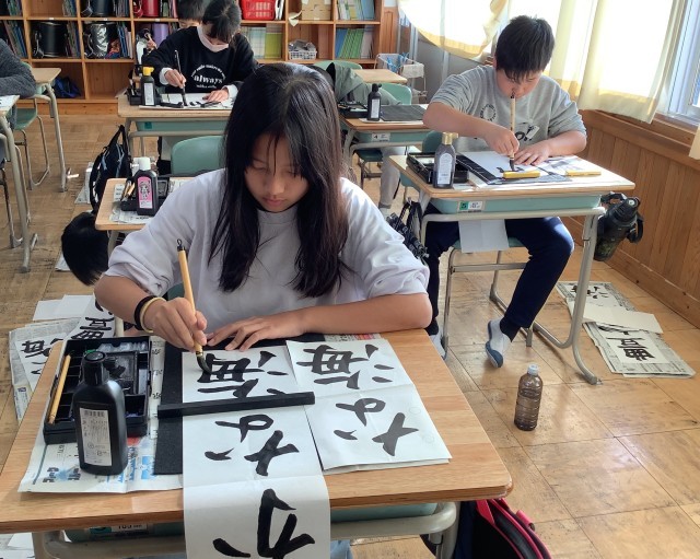 今年度も、采邑先生に書写指導に来ていただきました。