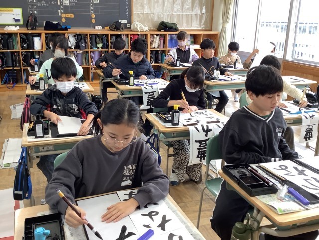 1月8日 書き初め会(5年生)