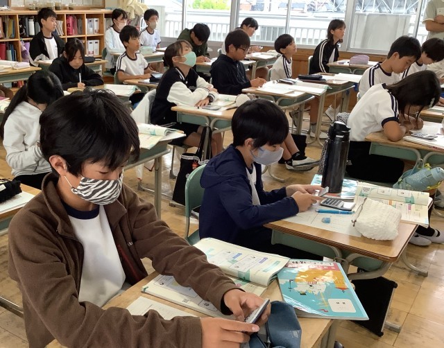 タブレットを使って、1学期の復習をクイズ形式で確認しました。