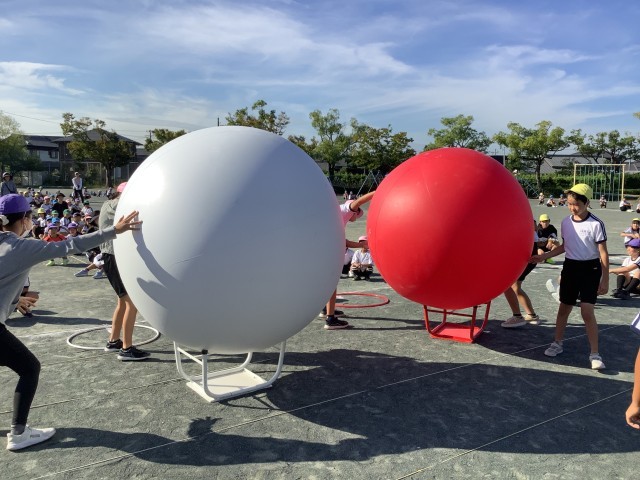 今日は、実際に大玉を使って競技しました。