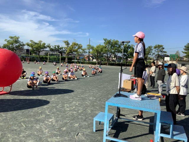 6年生がリーダーシップをとり、力いっぱいがんばろうという気持ちをこめて掛け声を掛け合いました。