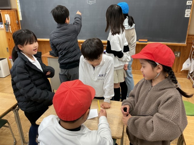 ペア学年の上級生が中心となり、クイズやゲーム、絵しりとり、フルーツバスケットなど、異学年で楽しく活動しました。