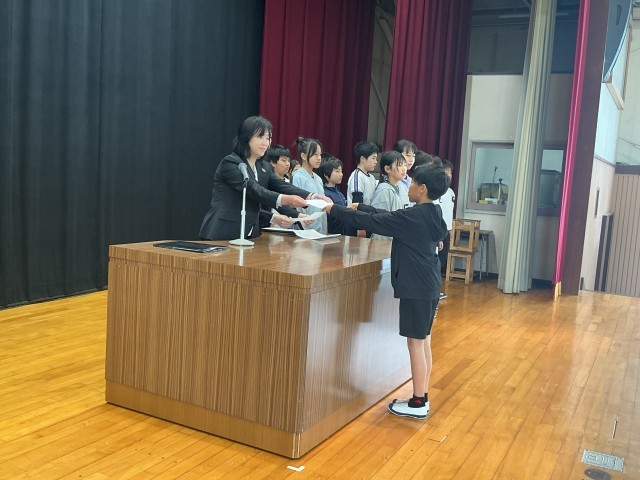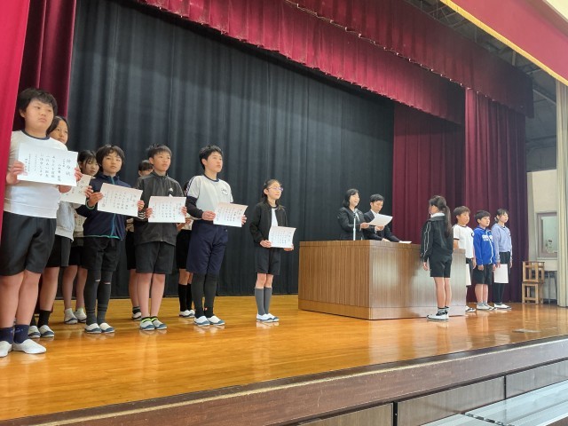 一年のしめくくりの修了式が行われました。各学年の代表児童が、修了証を校長より受け取りました。