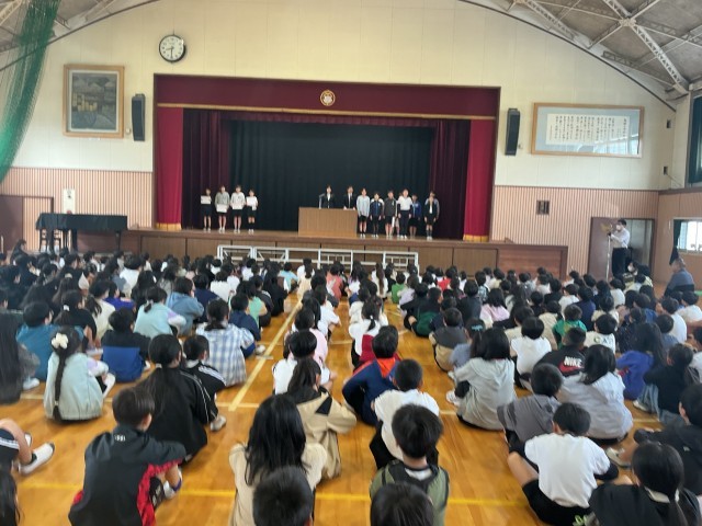 新しい学年や学級、仲間への期待と、「がんばるぞ」という気持ちが伝わる前向きな言葉がたくさん出てきました。それを聞く1年生~5年生までの子どもたちも、自分と照らし合わせて共感しながら、真剣に耳を傾けていました。新学期がとても楽しみです。