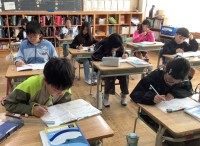 6年生は、総合的な学習の時間「いつか来る日のために」の授業で、これまでの学習をもとに、自分や家族、地域を守るために自分たちができることを考えました。 また、外国語の授業で、身の回りのものの生産国につ...