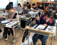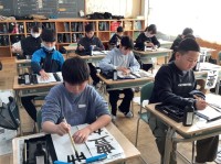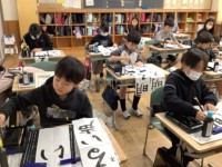 小学校最後の書き初め会です。課題は、「満天の星」です。2学期の後半から練習してきました。手本を見て、一筆一筆、集中して書き上げました。