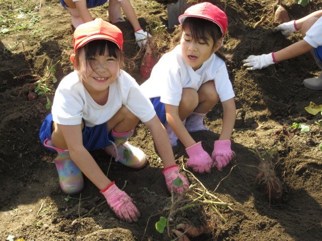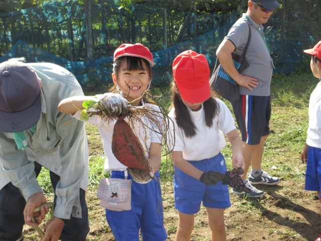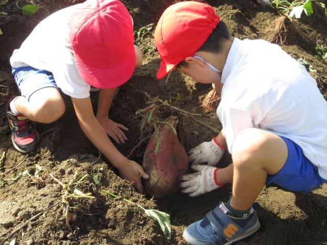 みんなの顔より大きいサツマイモが…。掘るのも大変です。