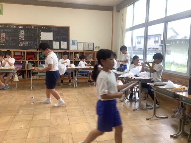 4年生は空気のヒミツをさぐっています。一人一人が自分でテーマを考えて、実験をしています。