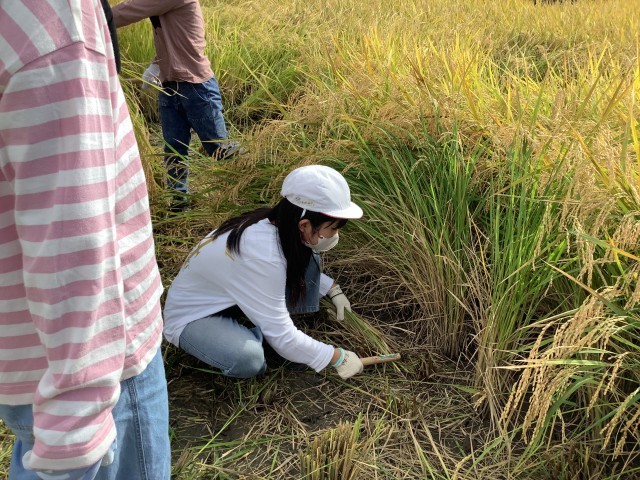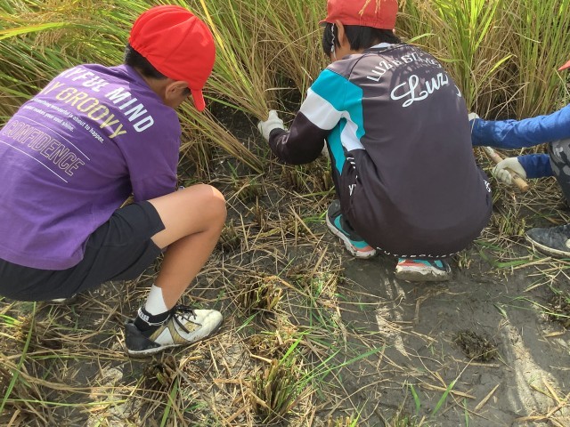 鎌を使って刈るのは、簡単にはできず、昔の人の大変さが分かりました。