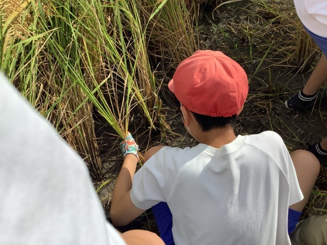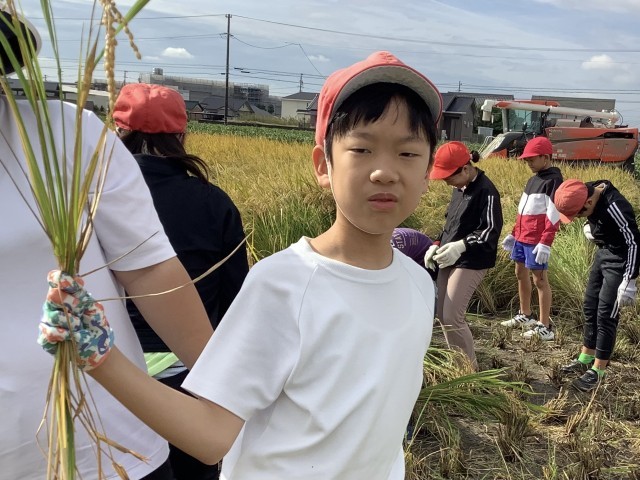 5ねんせいの こうりゅうで いねかりを しました。