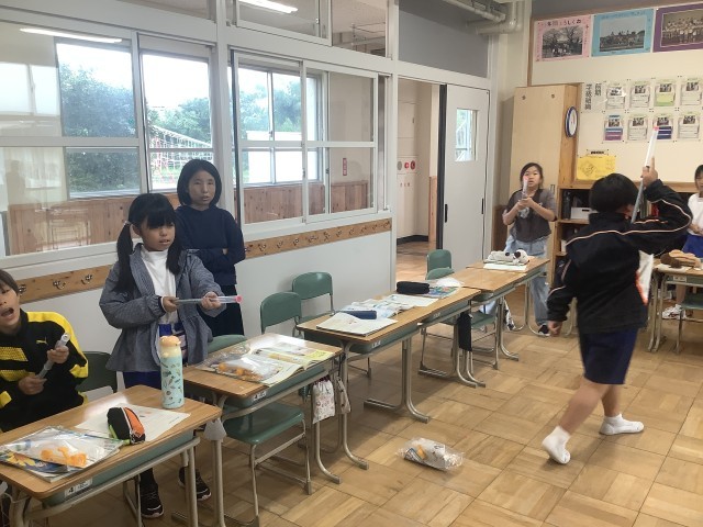 とじこめた空気の実験を進めました。一人一人が見つけた「空気のひみつ」を全体で発表し、実際に確かめてみました。空気にはいろいろなひみつがありました。さて、次は「水」に変えて実験です。