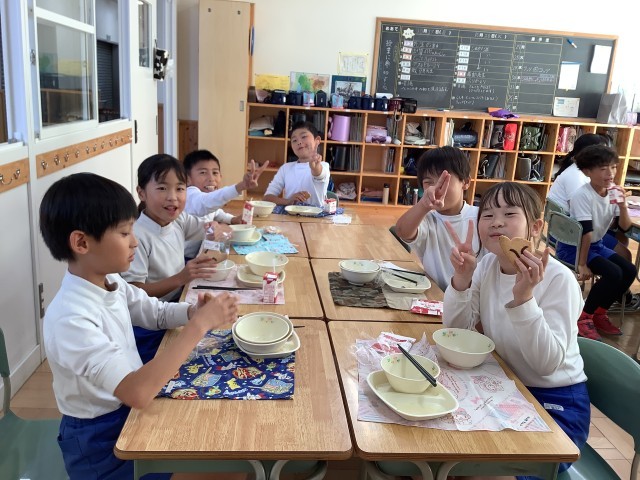 今日の給食に「南吉からの贈り物」(きつねの形のクッキー)が出ました。みんなとても嬉しそうです。これから、国語でごんぎつねの学習をしていきます。どんなお話か楽しみですね。