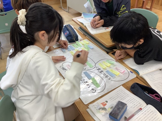 自分の意見を付箋に書き、グループで似た意見をまとめました。