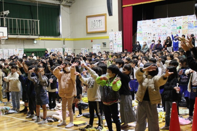 また、6年生は事前に行ったワークショップで作成した絵もかざりました。