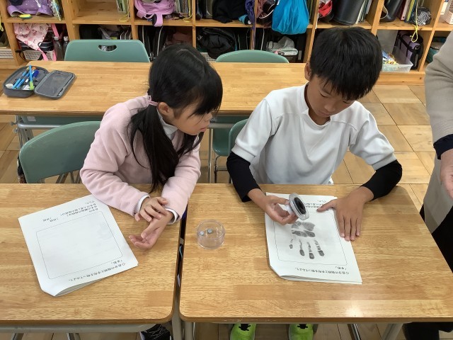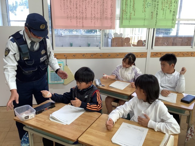 11月18日(火)に警察出前授業がありました。警察の方が来てくださり、警察官の仕事や道具のことについて教えていただいたり、指紋採取を体験させていただきました。最後にパトカーや白バイにも乗せてもらい貴重な経験になりました。
