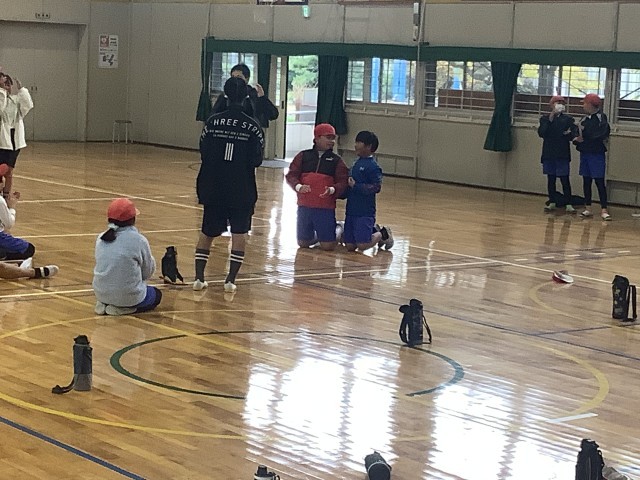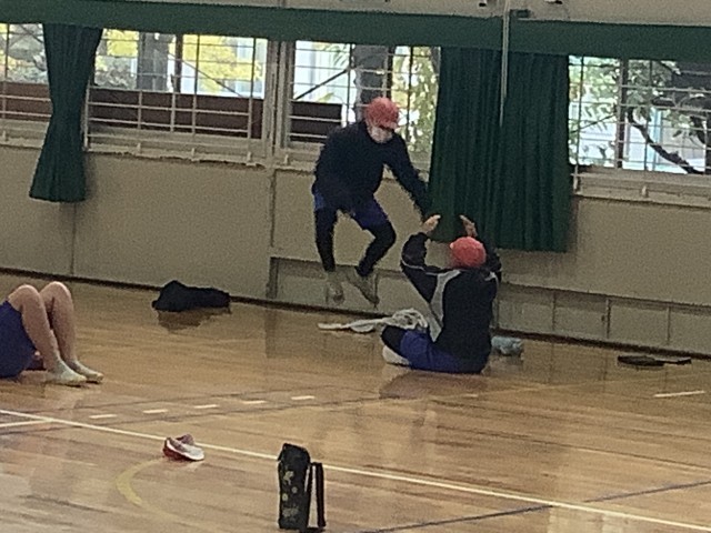体育の表現活動です。噴火などのテーマを体で表現しています。さて、何を表しているでしょうか?