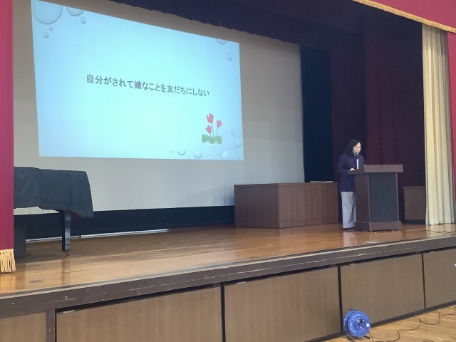 今日は全校朝会でした。来週から始まる人権週間に向けて校長先生からお話がありました。言葉遣いや行動に気をつけましょう。