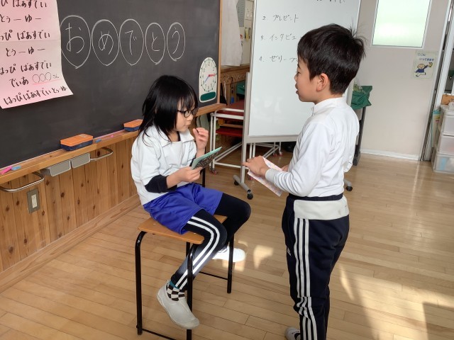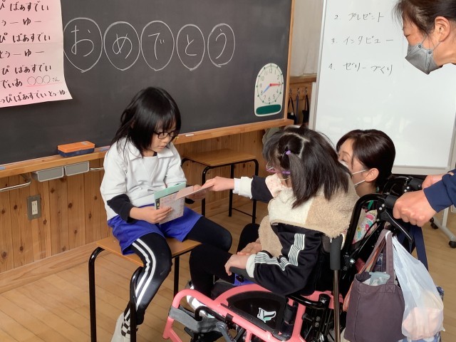 「いつもいっしょにあそんでくれて ありがとう。」「これからもよろしく。」と、すてきなひとことと ともに、プレゼントをわたすことが できました。