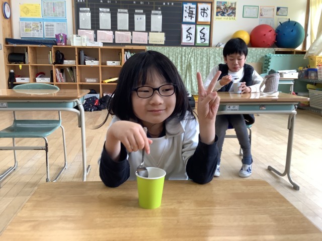 おやつにぶどうゼリーをつくりました。 つめたくておいしかったです。