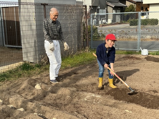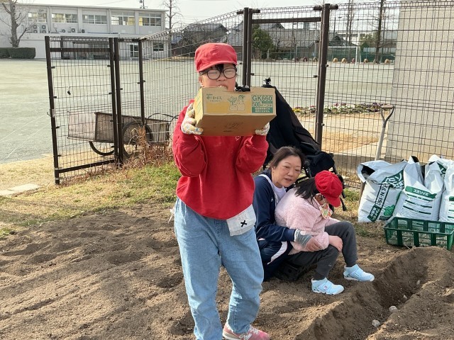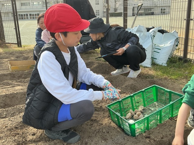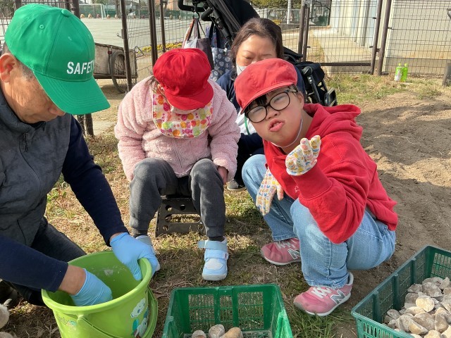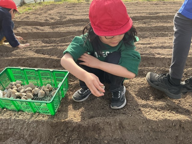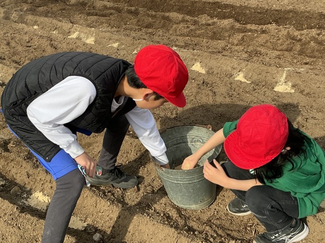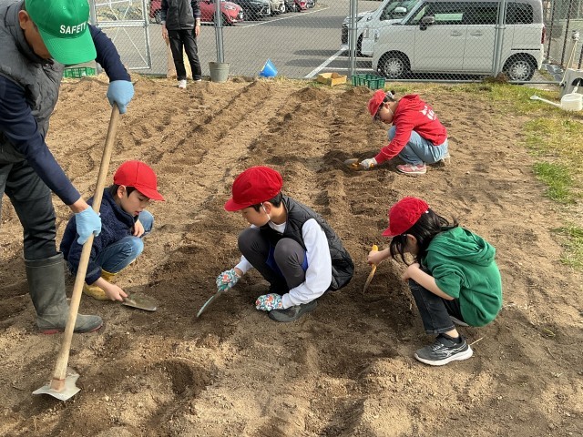 やさいのせんせいがたといっしょに たねいもをうえたり、 こめぬかを まいたりしました。