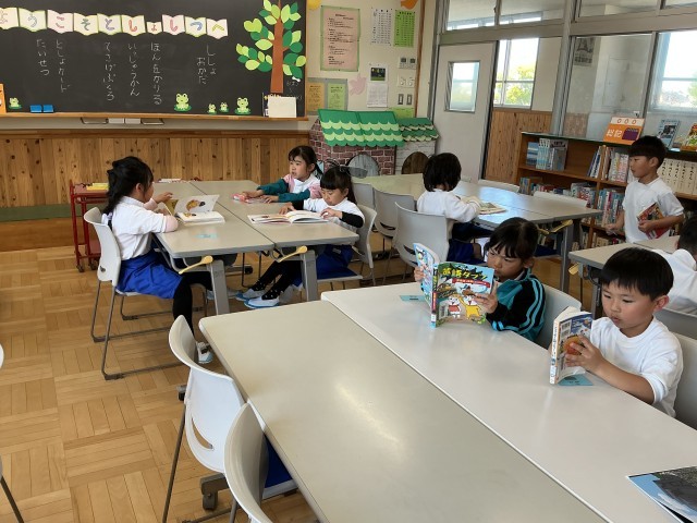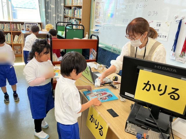 司書の先生から、本の借り方、返し方を学びました。1週間、借りられます。みんなの本です。大切に読みましょう。