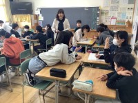 6年生のかんげいのことばと校歌を聴かせてくれました。