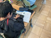 昨日、磨いた焼き板に自然教室の思い出をかいています。