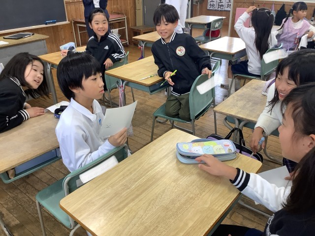 3年生 さくらさんから郵便物の学習に協力してほしいというお話がありました。 さくらさんの学びのために、はがき記入の協力をしました。 桜井っ子のために積極的に協力する様子がありました。