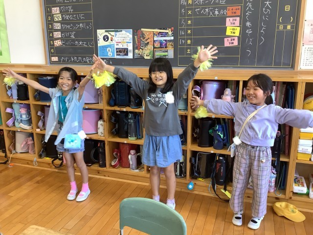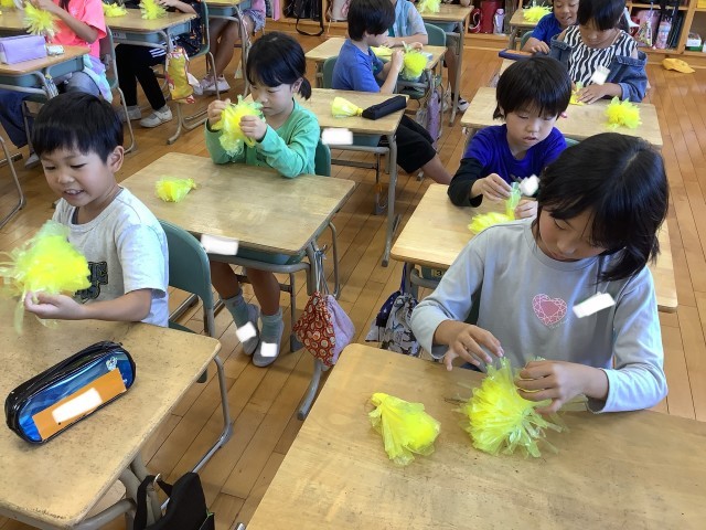 サクライピックの練習が進んでいます。今日は、本番で使うポンポンを手作りしました。出来上がりに嬉しくなって、ついつい踊り出してしまいました。